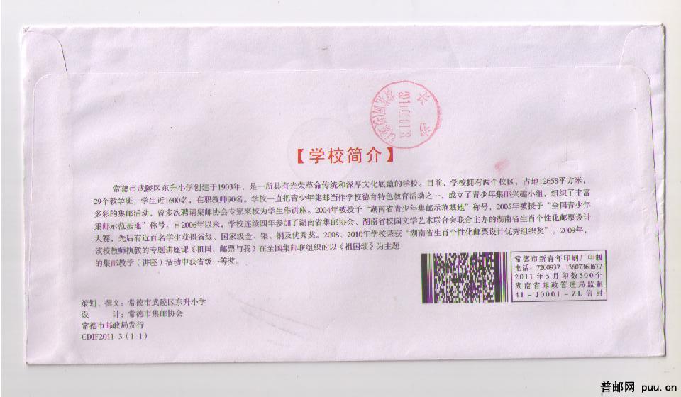 常德市东升小学集邮文化节纪念封实寄