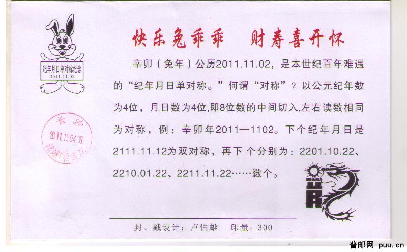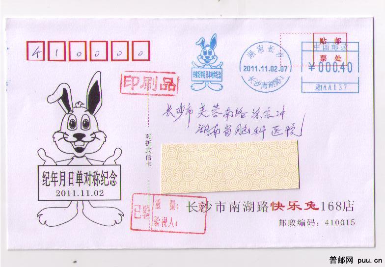 纪年月日单对称纪念邮资机戳实寄