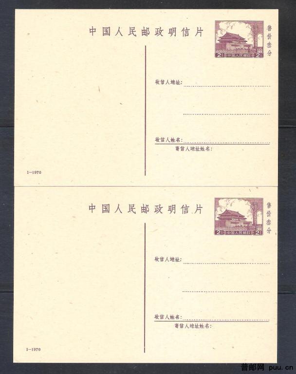 普9邮资片(70-1)两片