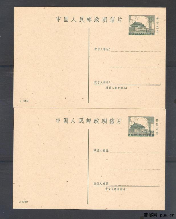 普9邮资片(59-3)两片