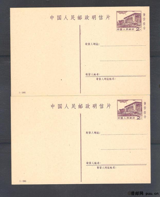 普14邮资片2分(81-1)两片