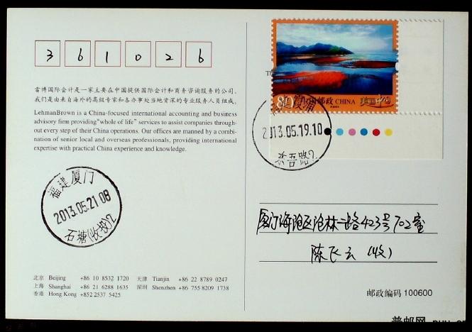 贴普32 80分霞浦滩涂右下直角边色标票首日原地实寄明信片一枚
