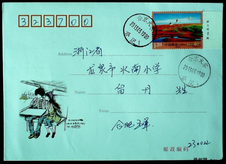 贴普32 盘锦红海滩销“合京火车”火车邮戳的首日实寄封一枚
