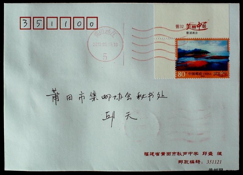 贴普32 80分霞浦滩涂“票名直角边”票首日福建无省名特色波纹戳实寄封一枚