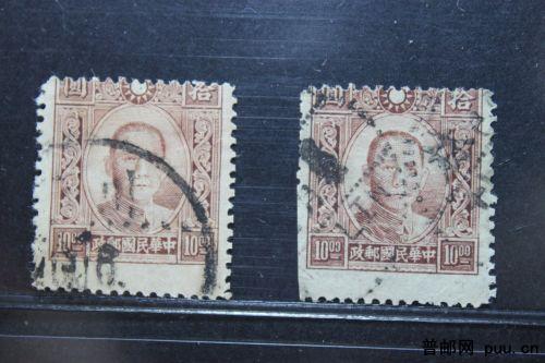 2枚民国百城版孙像齿孔裁切移位。裁切到图案了。。
