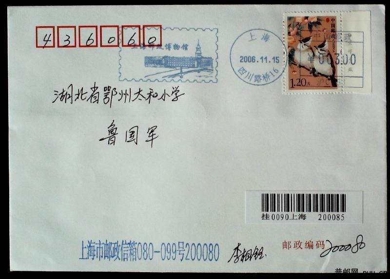 普31 1.2元带厂铭首日上海邮资机补资从上海邮政博物馆寄出