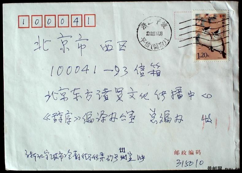 贴普31 1.2元票“元”字与“0”相连票自然实寄封一枚(浙江宁波)
