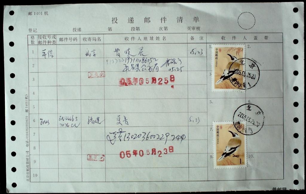 2003年北京建内大街邮局投递邮件清单4