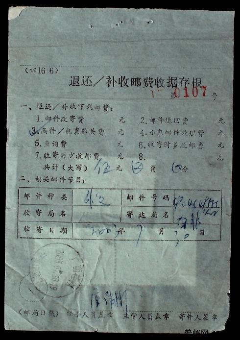 2003年广西桂林贴鸟票合计5元包裹验关费单据一枚