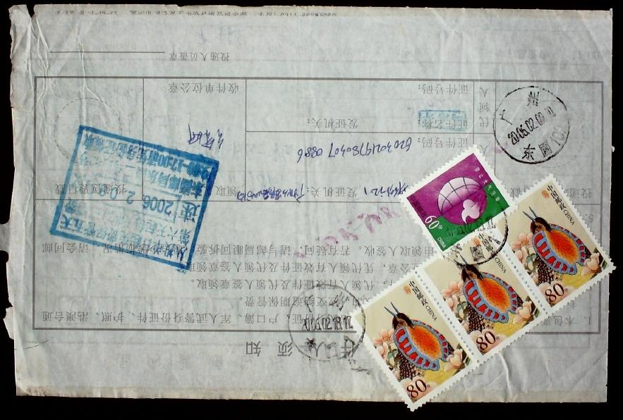 贴普31 80分套色移位三联票包裹单一件