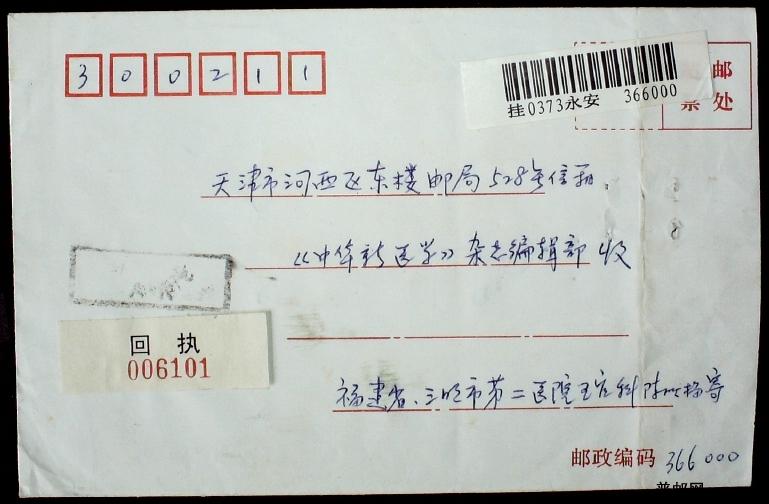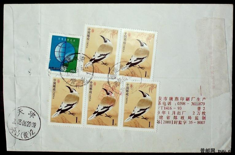 2003年贴普30、31自然国内回执实寄封一枚