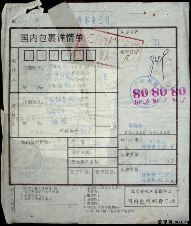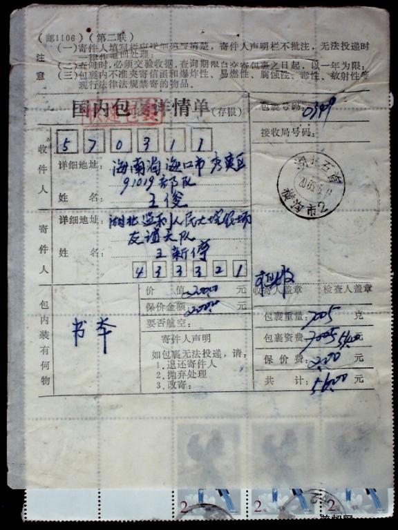 贴普31 2元双码票包裹单2件、1元单大码安排包裹单1件