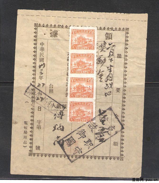 民国33年战地奖励金印花税单