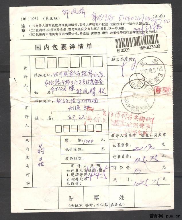 贴普民居2元122枚:包裹单