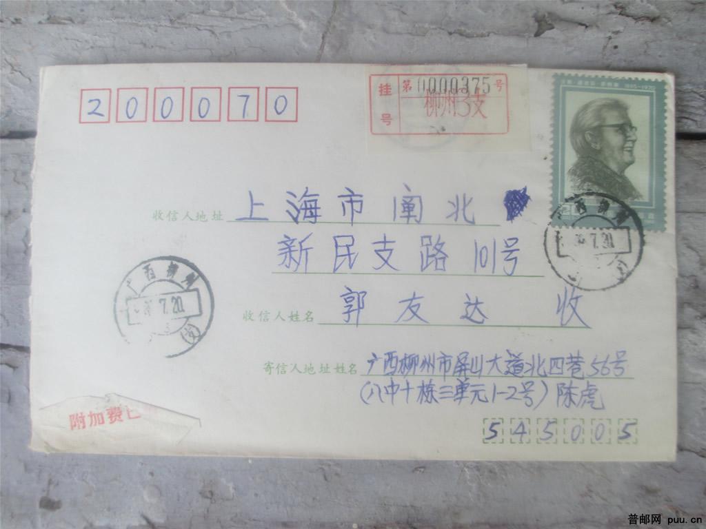 1989年广西柳州附加费挂号实寄封