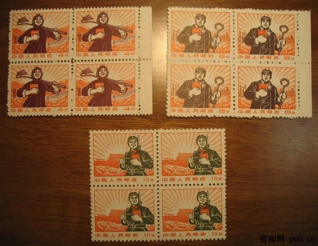 普无号 工农兵新票四方联(农细齿带边,工粗齿带边)