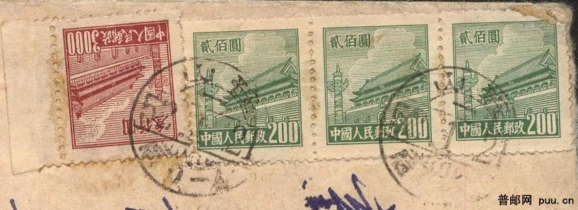 1952年1月21日贴3600元邮资背有“陆军”字样辽宁鞍山寄天津双挂快实寄封