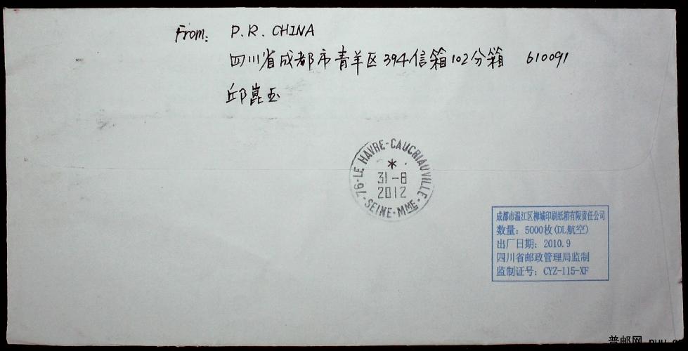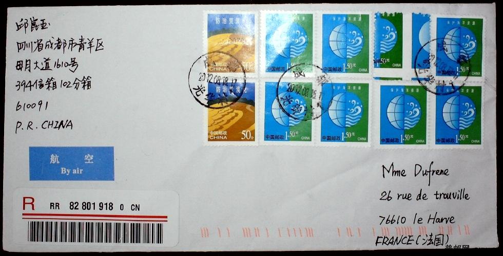 普30 150分齿孔大移位国际航空挂号印刷品实寄封