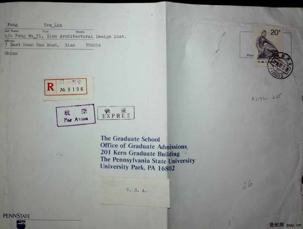 单贴普24大佛20元国际航空挂号快递实寄封一枚