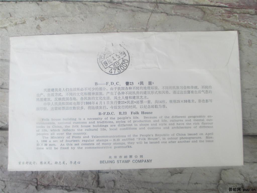 普二十三《民居》2分票首日实寄封1986年04月01日