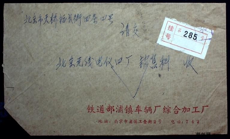 贴普18票1983年南京浦镇寄北京挂号印刷品实寄封一枚