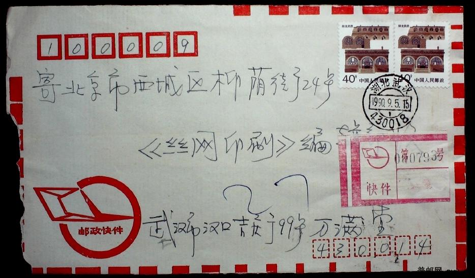 贴普23 40分粗齿双联武汉寄北京快件封一枚