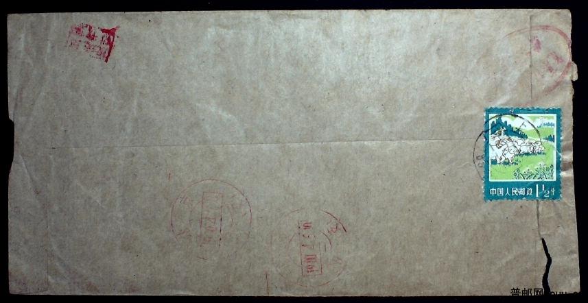 1980年贴普18 1.5分上海寄北京欠资改寄实寄封一枚(多戳)