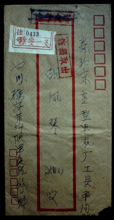 1982年贴普18普22票四川雅安一支寄出信箱开出部队挂号封一件