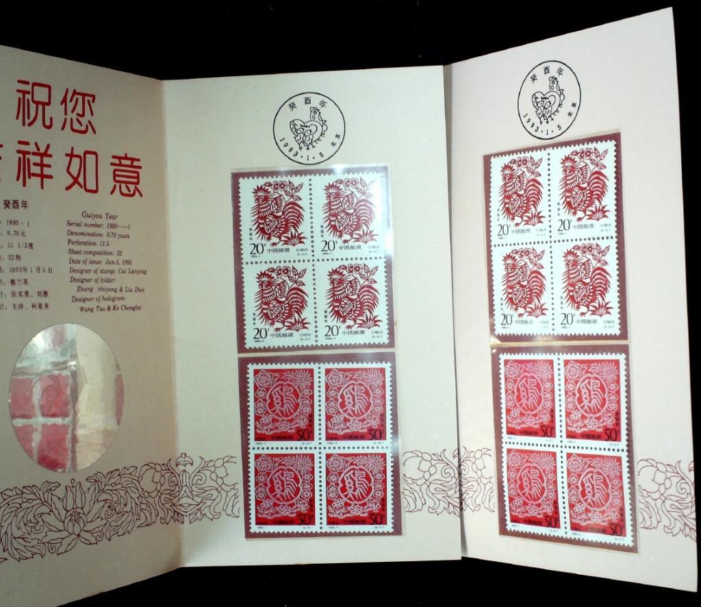 1993年癸酉年鸡年邮总邮折2枚(含鸡年新邮四方联全套2个)