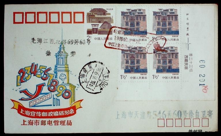 上海86年邮政编码宣传戳实寄封一枚(民居1.5分双铭当年使用)