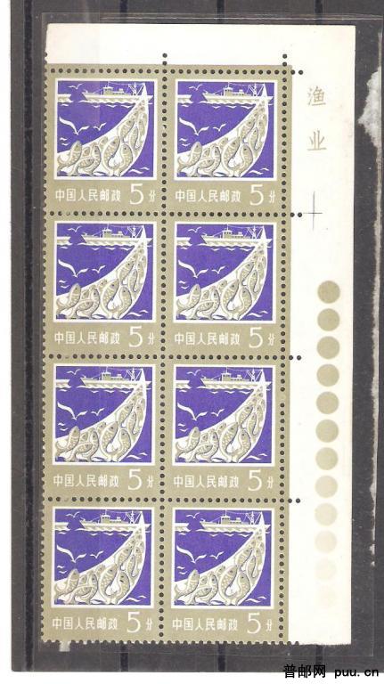 普18;5分版铭、色标、角边8方连