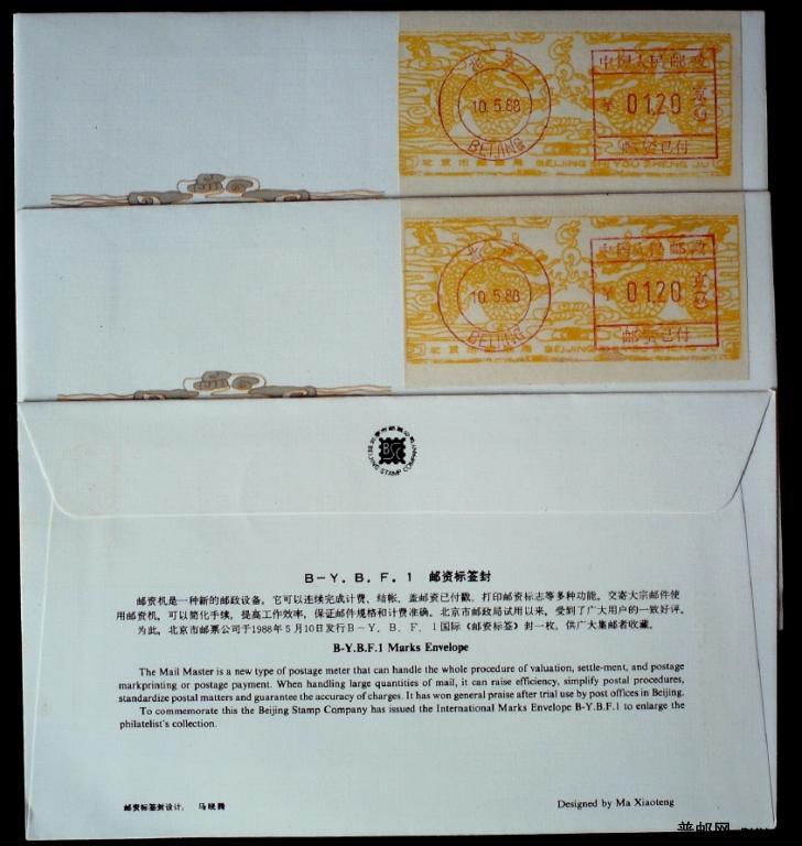 1988年北京B-Y.B.F-1 龙年邮资标签封3枚