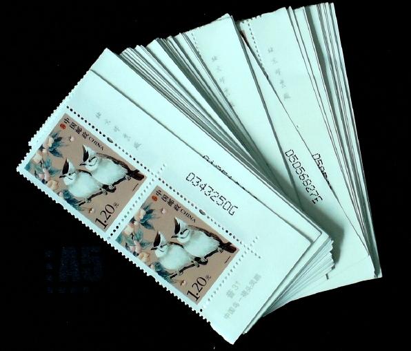 普31 中国鸟1.2元褐头凤鹛厂铭票名明码双联50件(面值120元)