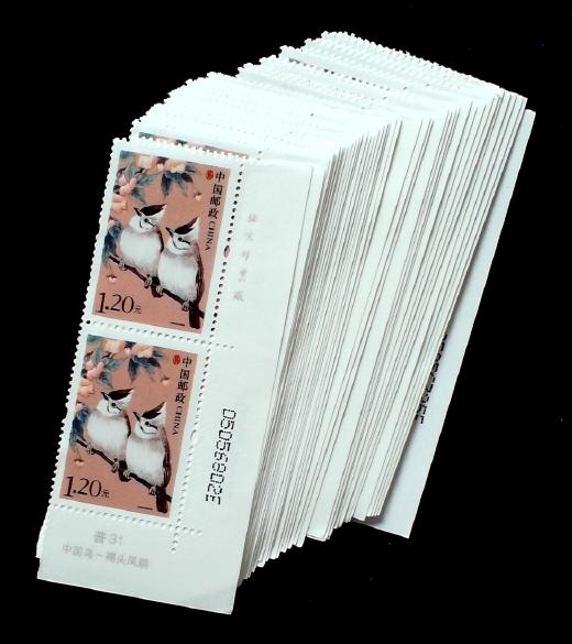 普31 中国鸟1.2元褐头凤鹛厂铭票名明码双联40件(面值96元)