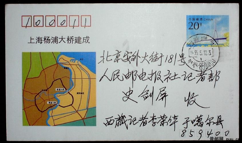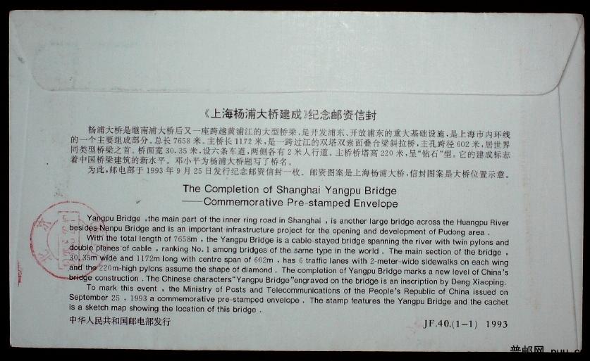 JF40 上海杨浦大桥建成纪念邮资封实寄封一枚