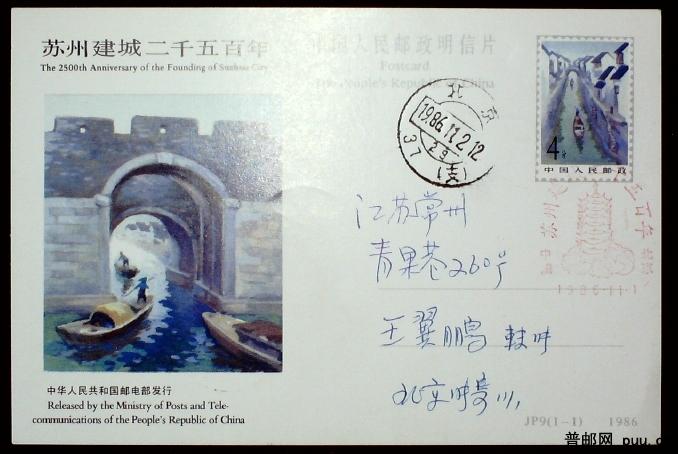 JP9 苏州建城二千五百年实寄片一枚