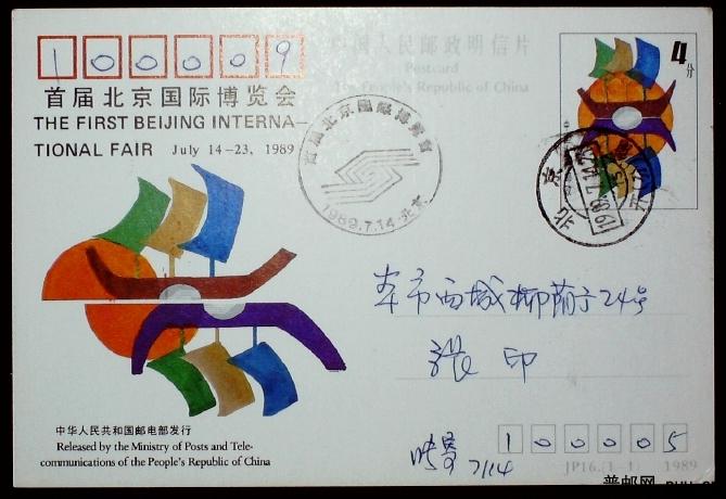 JP16 首届北京国际博览会首日实寄片一枚