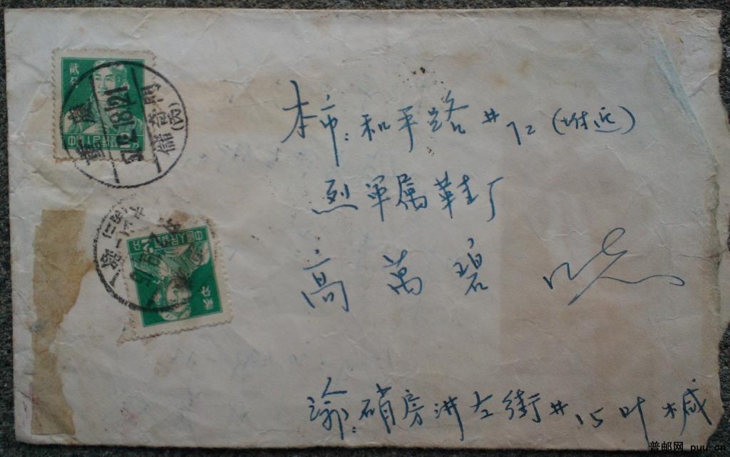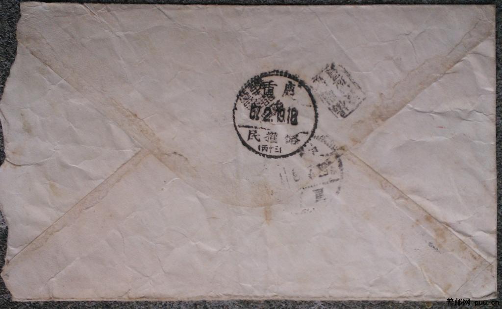1957年贴普8票重庆本埠2分欠资补资实寄封一件【精品】