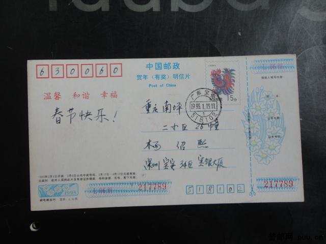 使用期极短的红色机盖戳(93HP贺年邮资明信片)