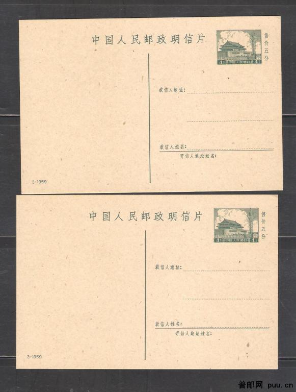 普9邮资片(59-3)两片