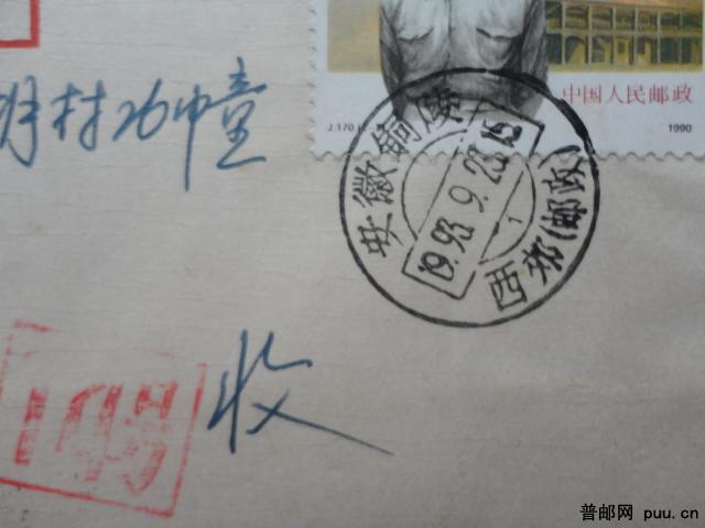 罕见的(邮政)三地名戳:安徽.铜陵.西郊(邮政)--戳极清!+投递员代号章(14号)