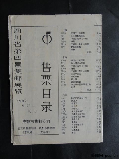 四川省第四届邮展售品目录(1987年9月)