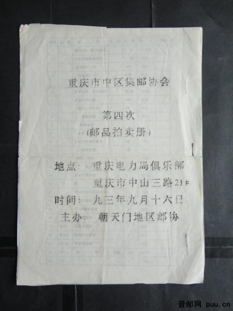 重庆市中区第4次邮品拍卖目录(1993年9月)