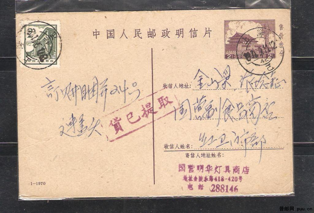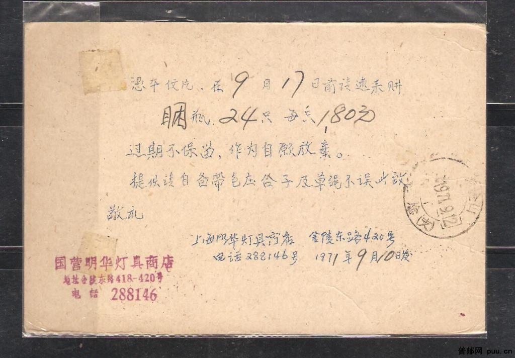 普9邮资片(70-1)71年航空实寄