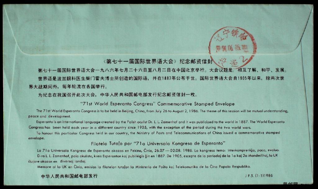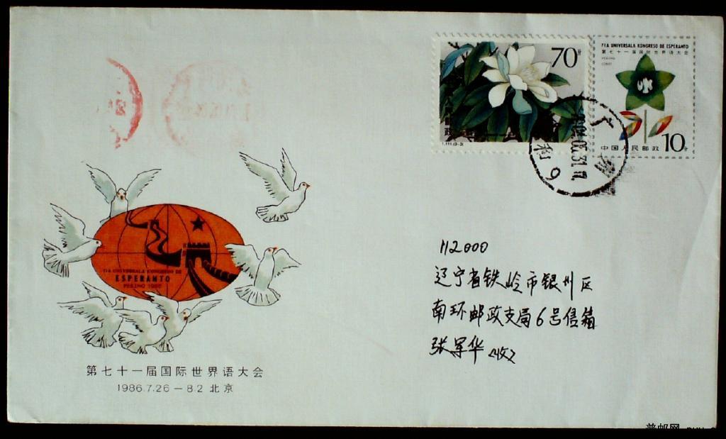 JF5世界语大会纪念邮封加贴T111 70分2004年广州寄辽宁
