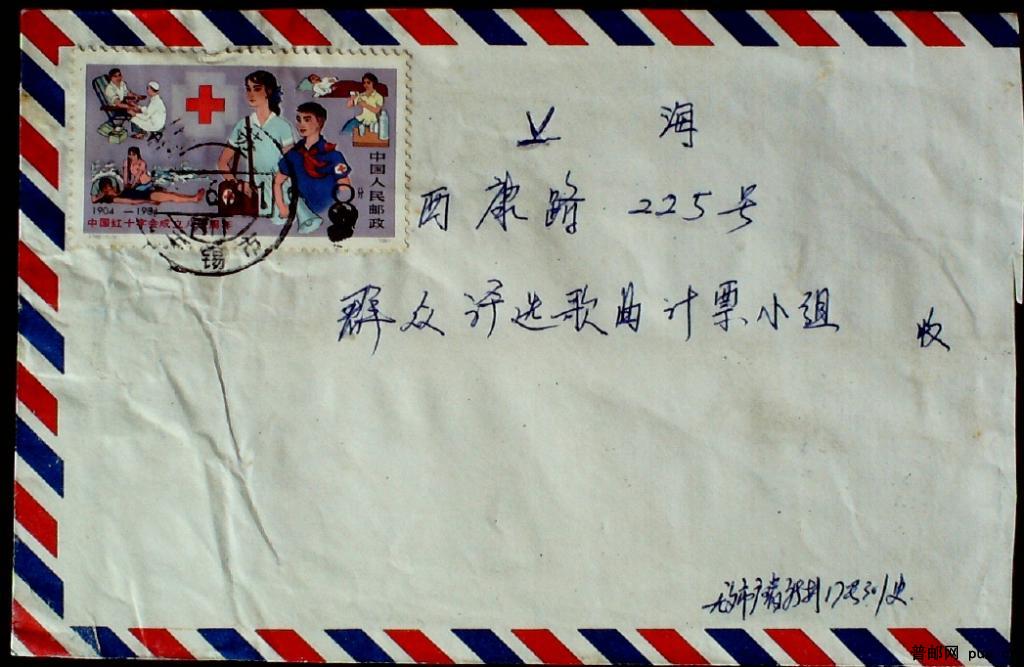 1984年贴J102红十字会销无锡子母戳实寄封一枚