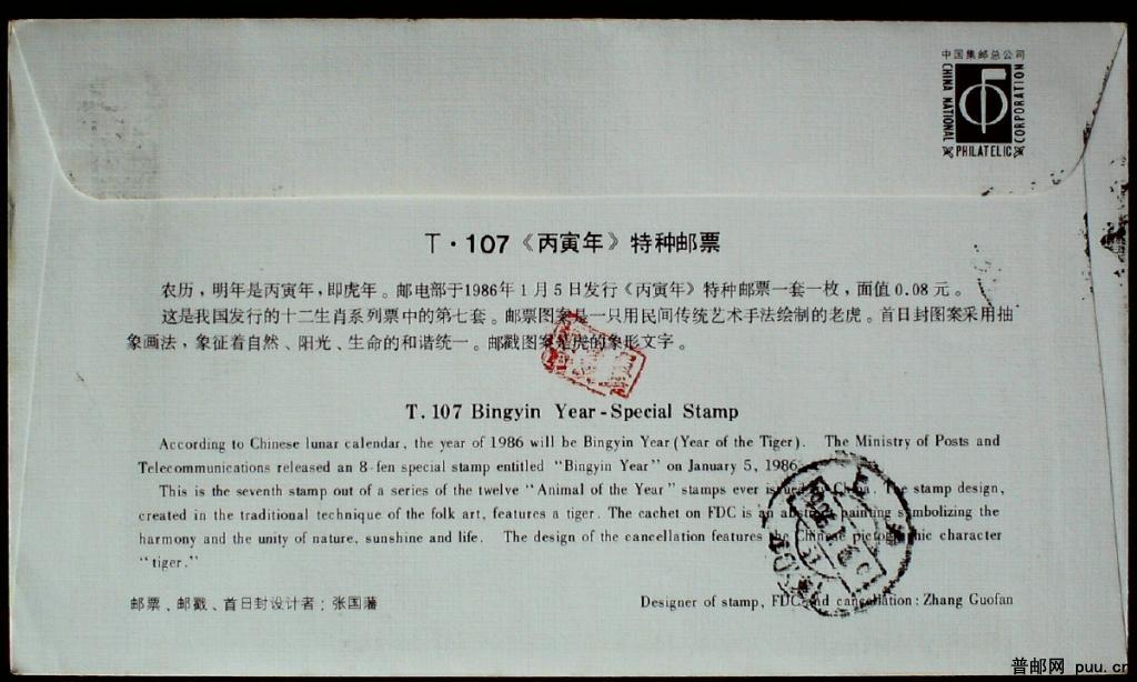 1986年T107虎年生肖邮票首日封一件