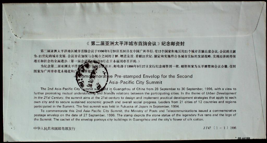 JF47太平洋城市首脑会议纪念邮资封加贴票实寄封