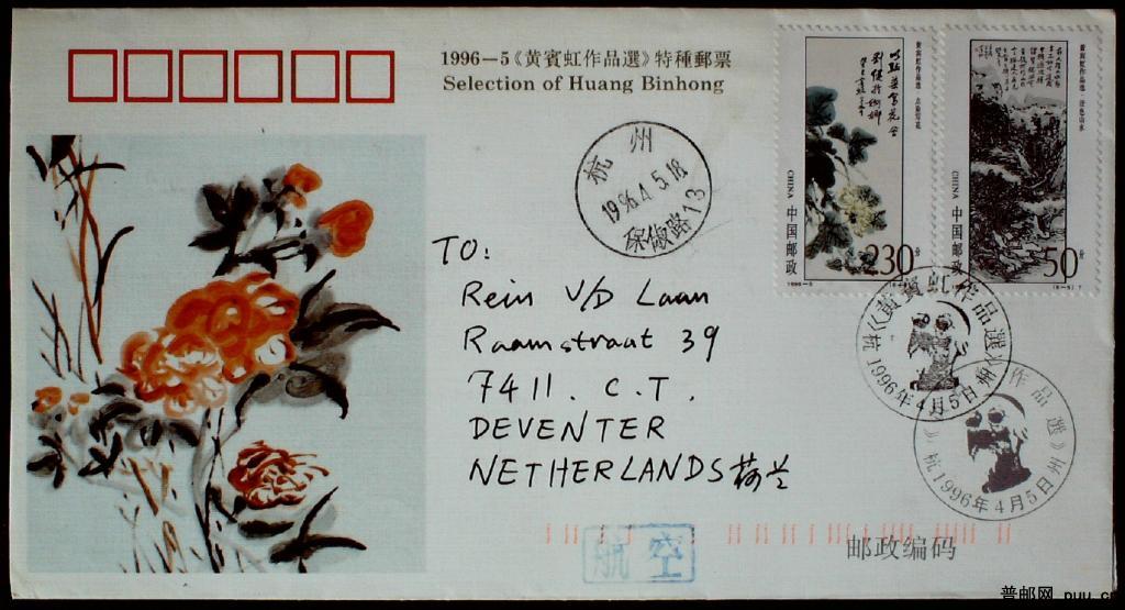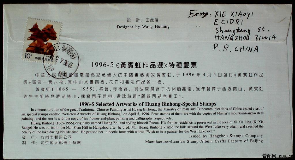 1996-5黄宾虹作品选杭州首日实寄封一枚