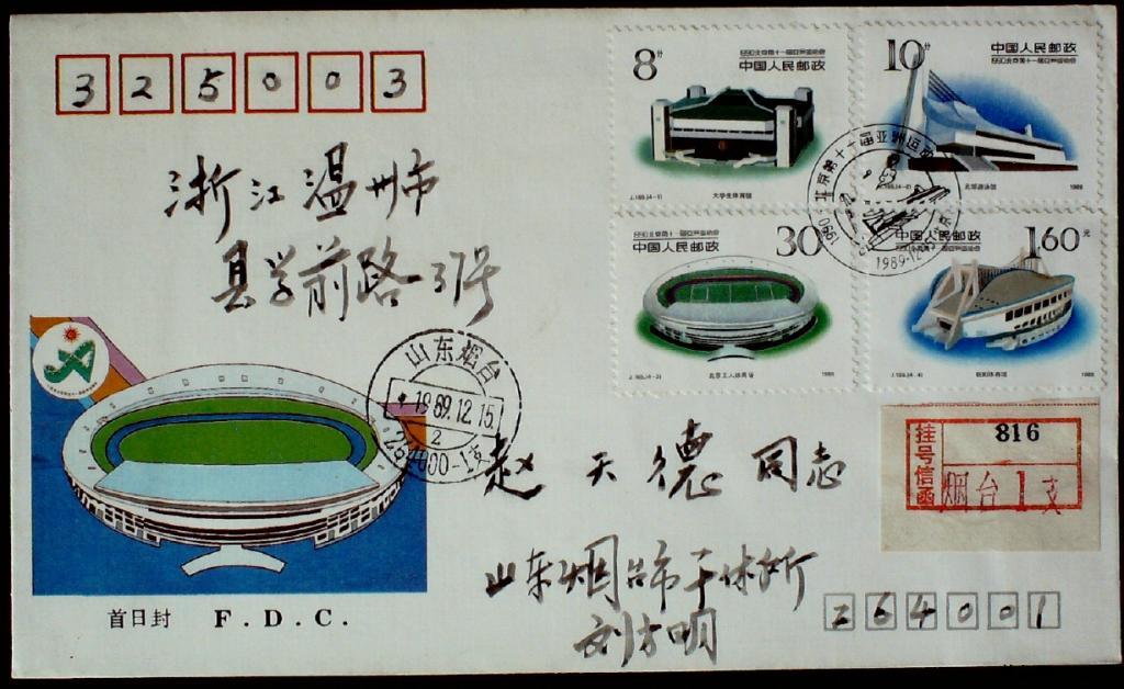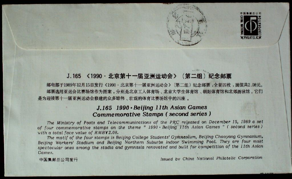 J165北京亚运会1989年场馆邮票总公司首日封一枚